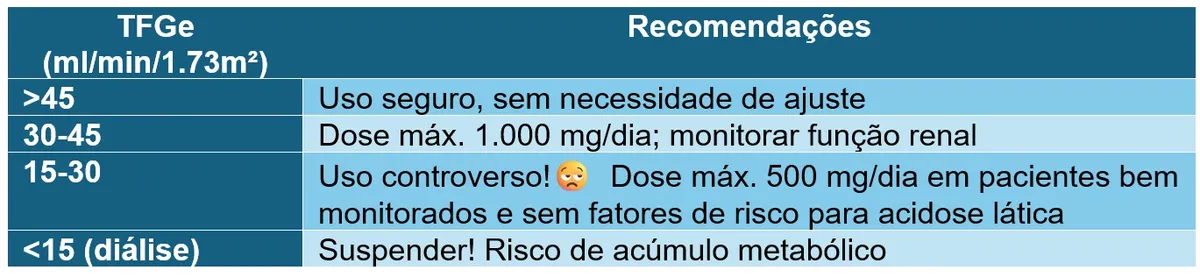 * Sugerem que a metformina pode ser segura e benéfica na DRC estágio 4 com ajustes de dose.